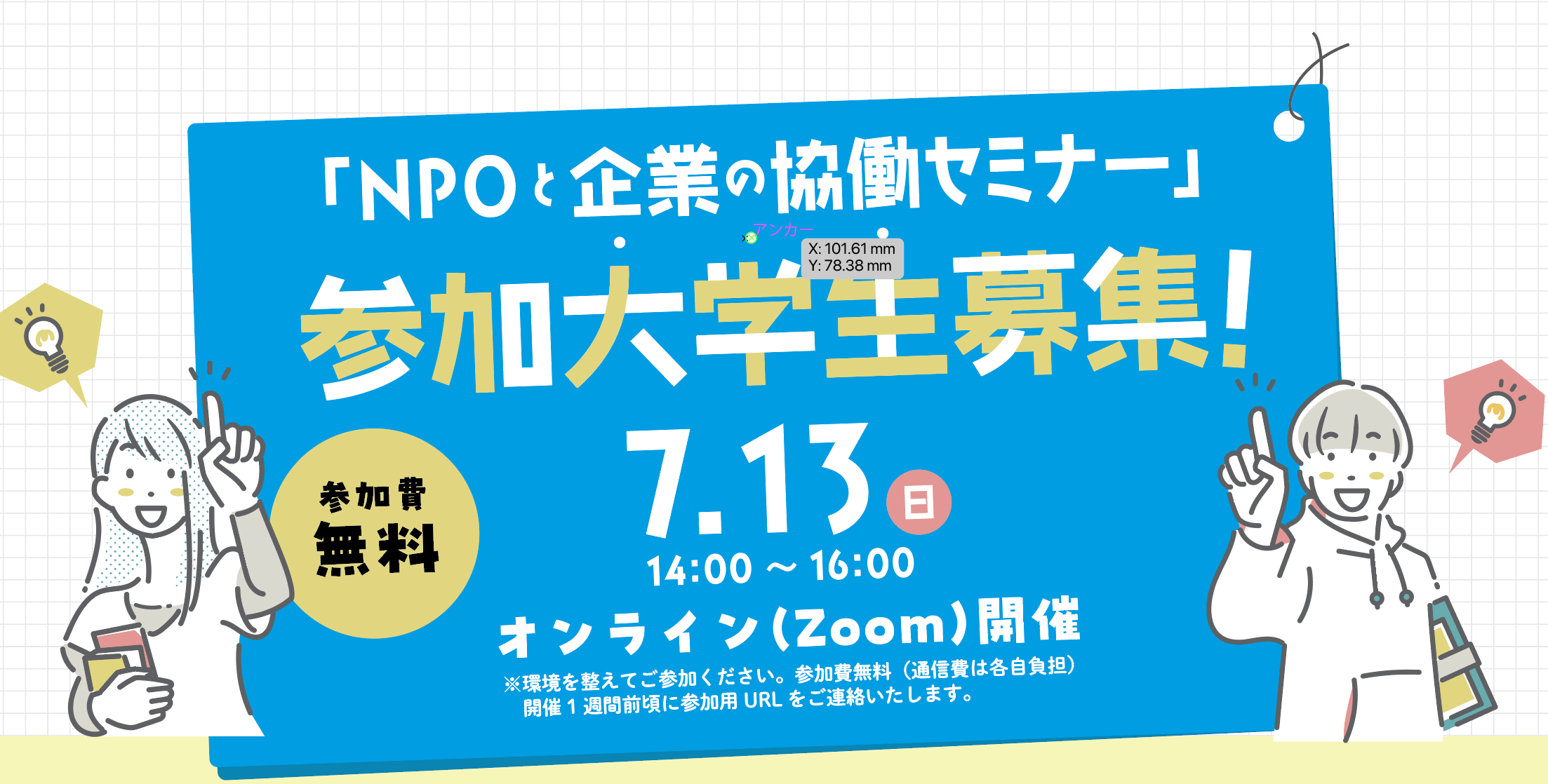 - NPOと企業の協働セミナー【7月13日(日):午後2時~午後4時】